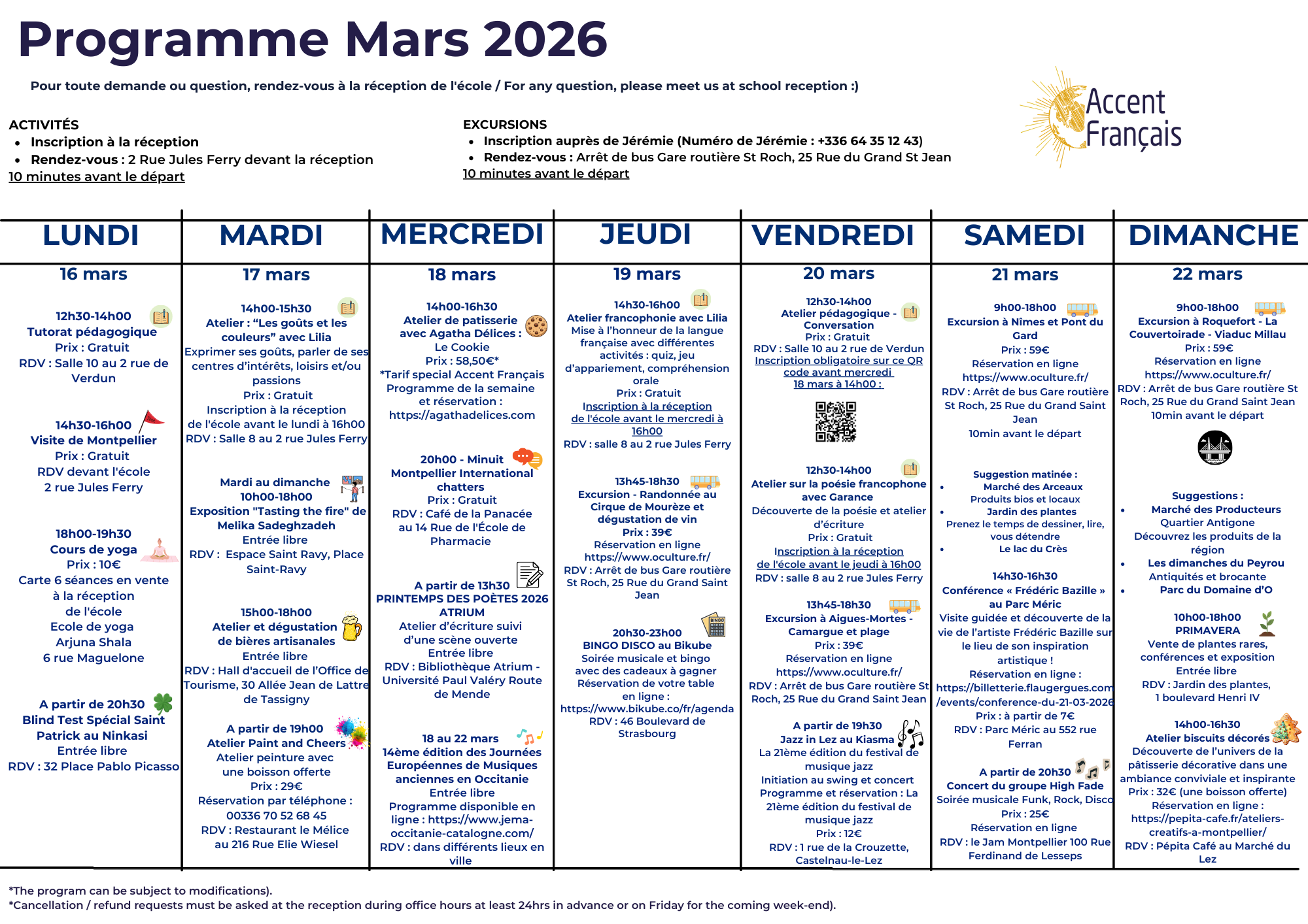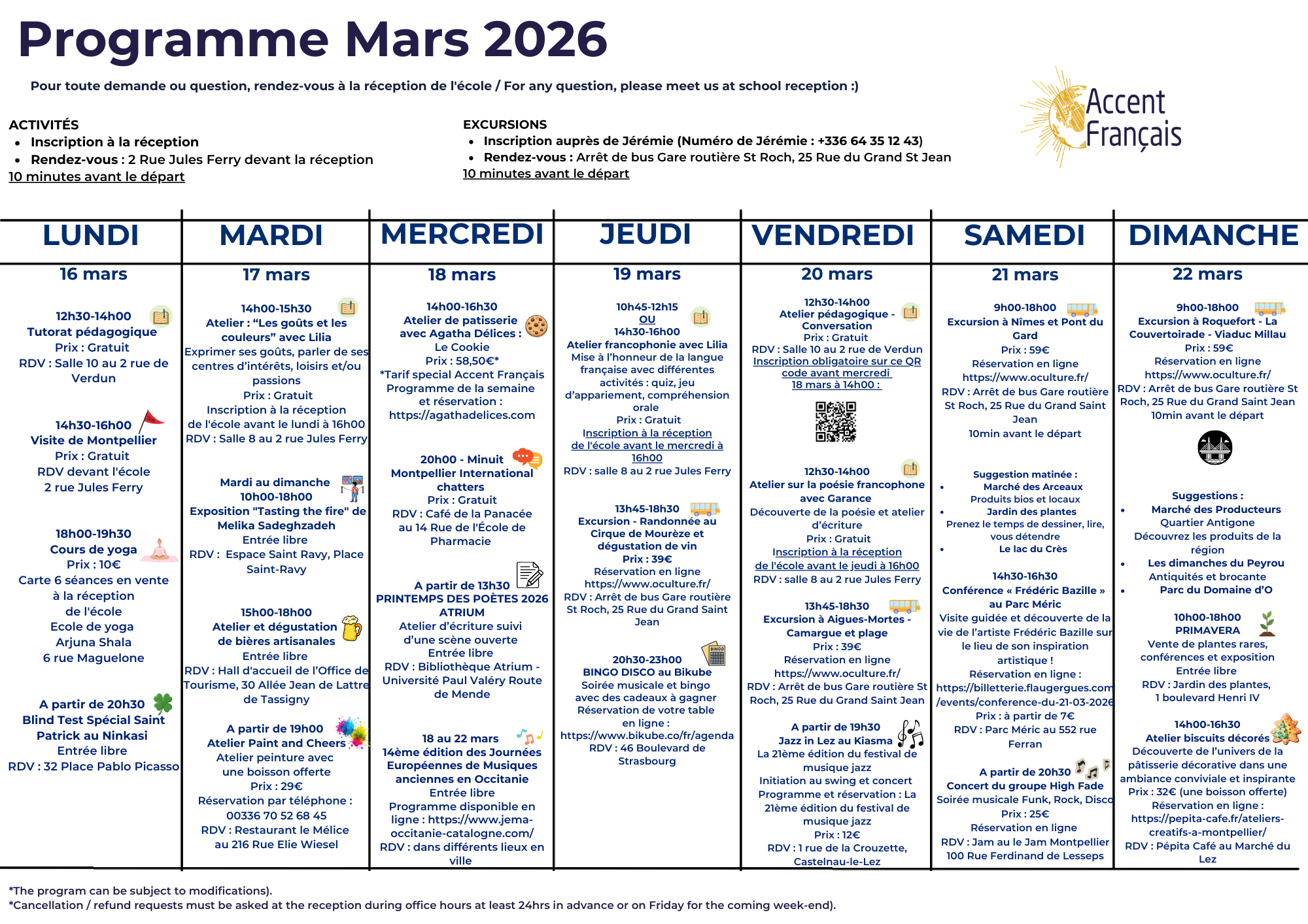 Activity programme from 16th to 22nd of March 2026