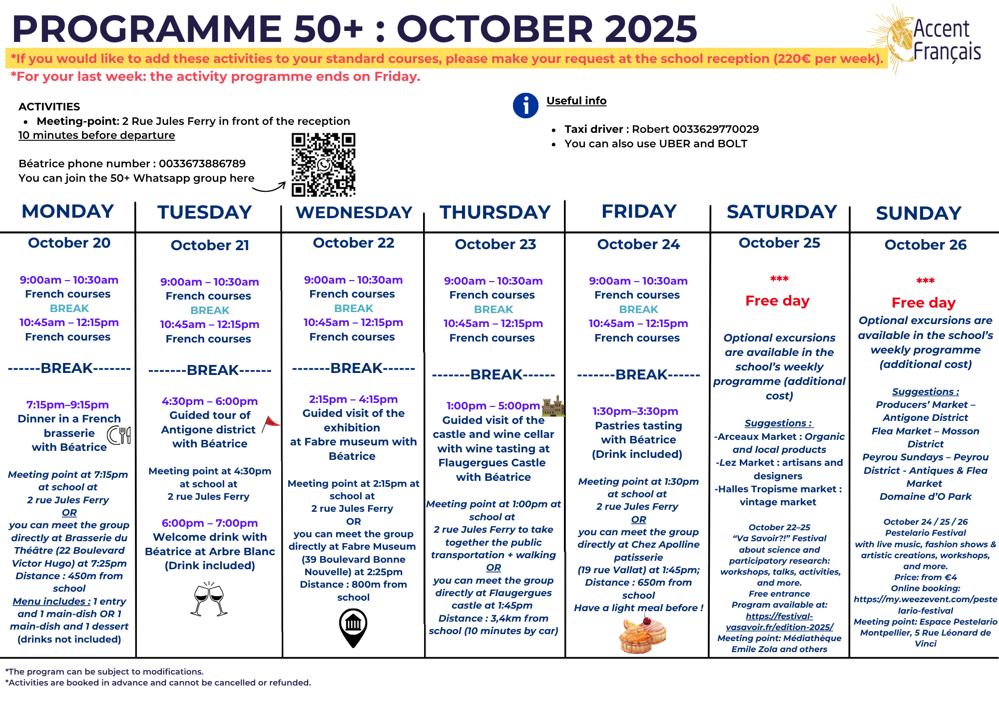 Please find here below the international cultural program and the 50+ activity program:
