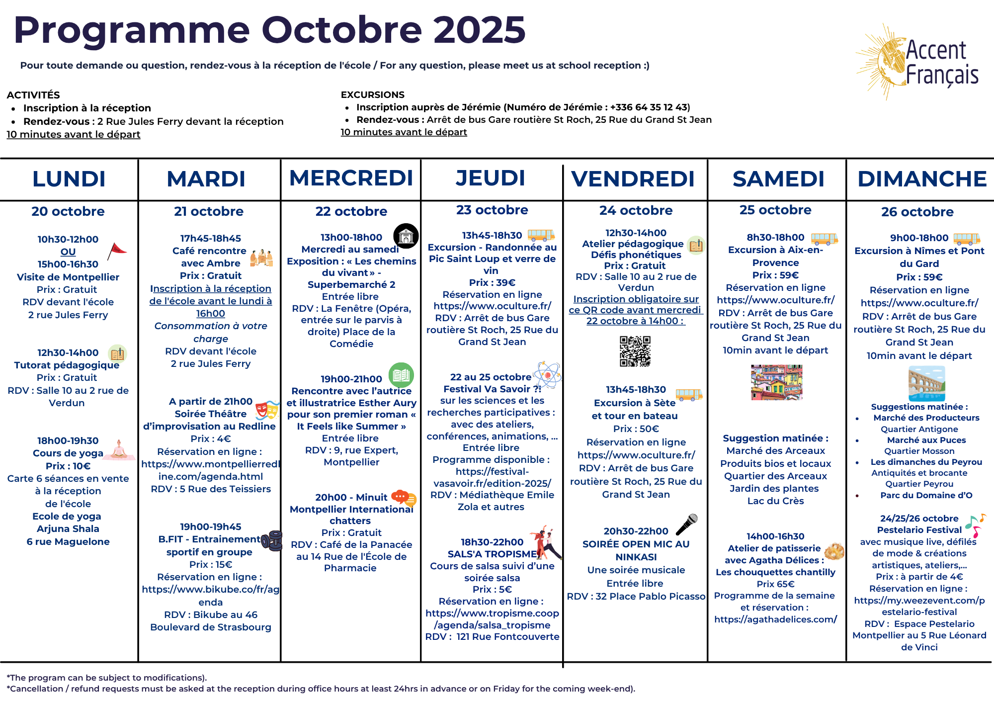 Activity programme from 20th to 26th of October 2025