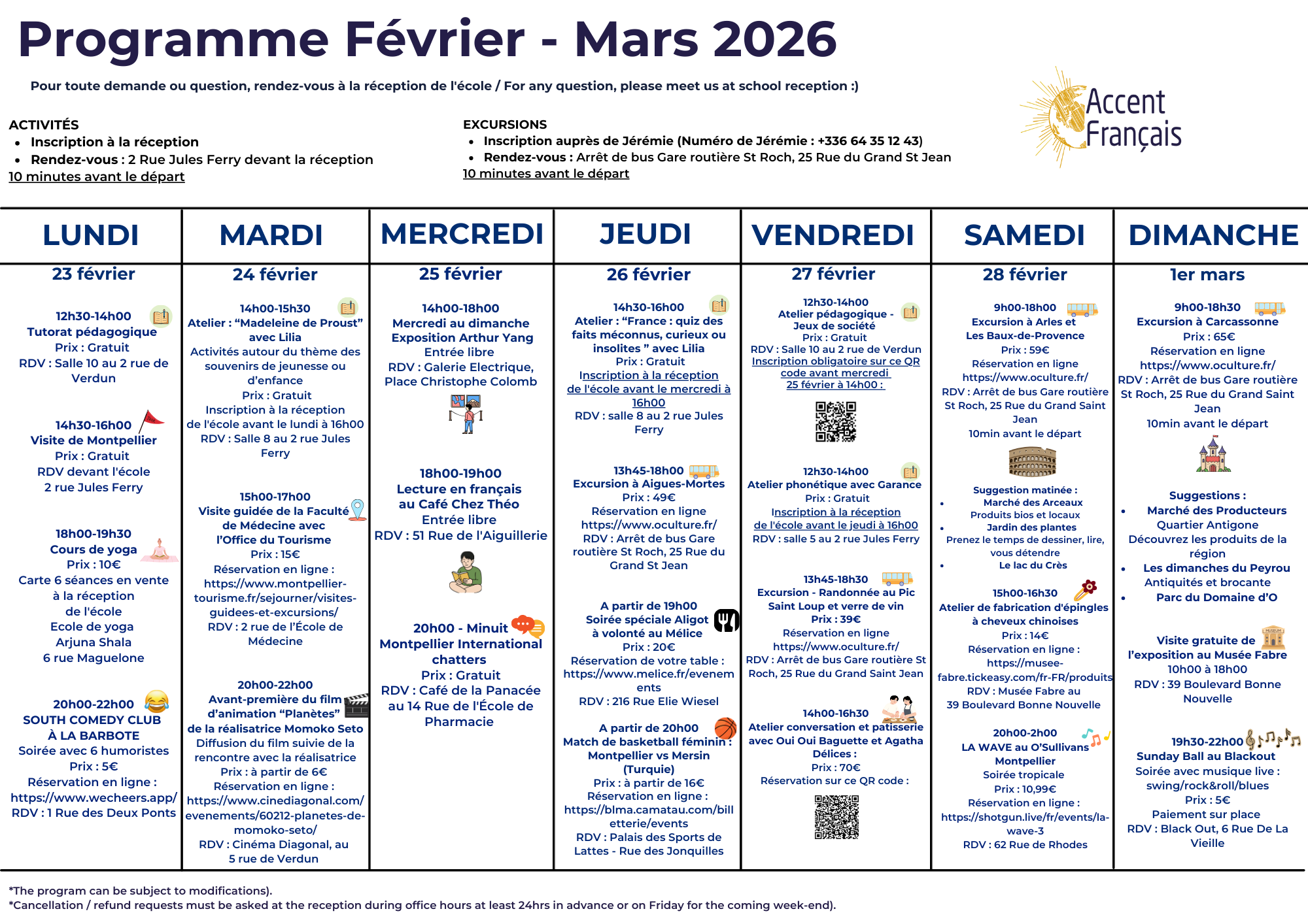 Activity programme from 23rd of February to 1st of March 2026