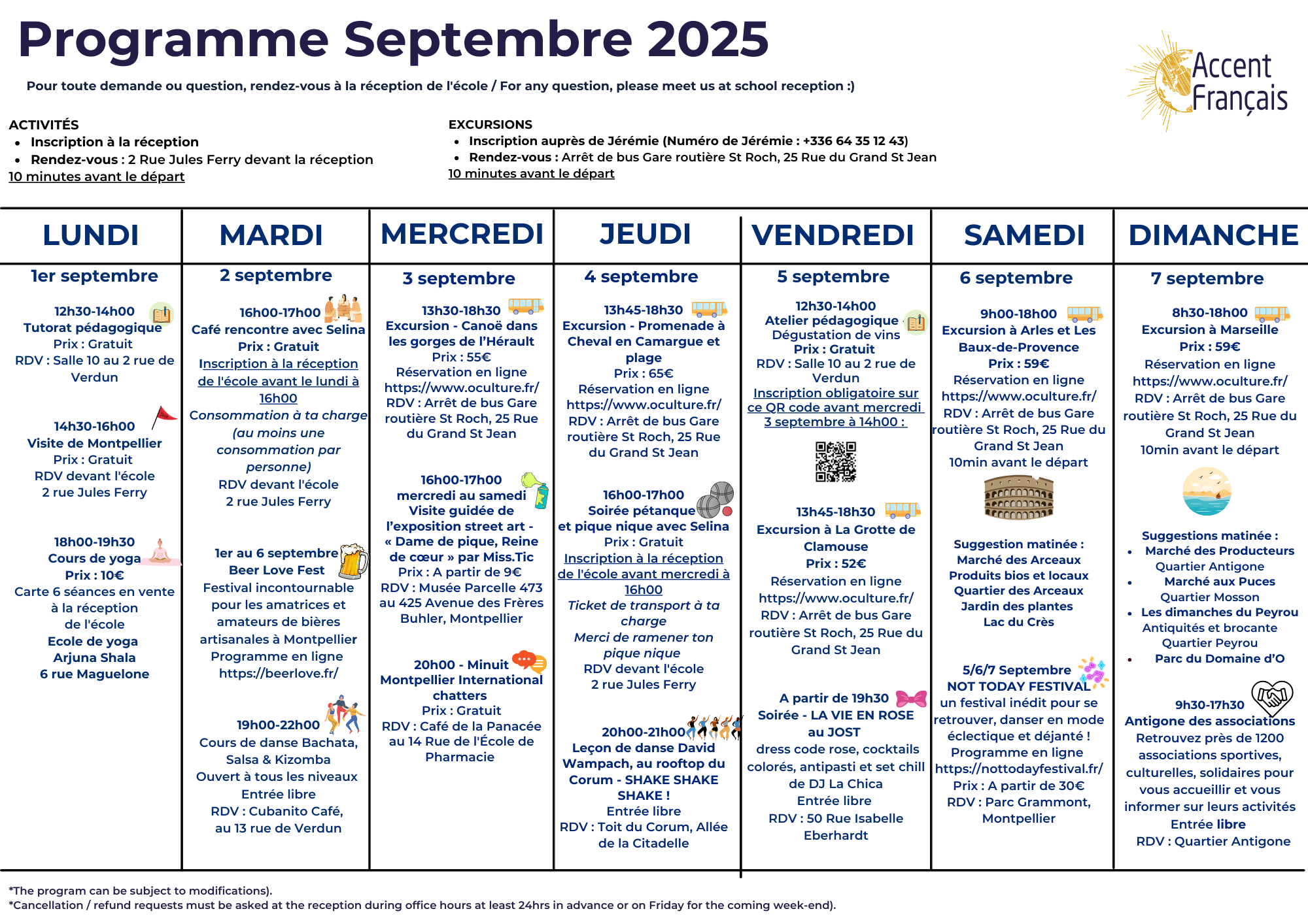Programme d'activités de la semaine du 1er au 7 septembre 2025
