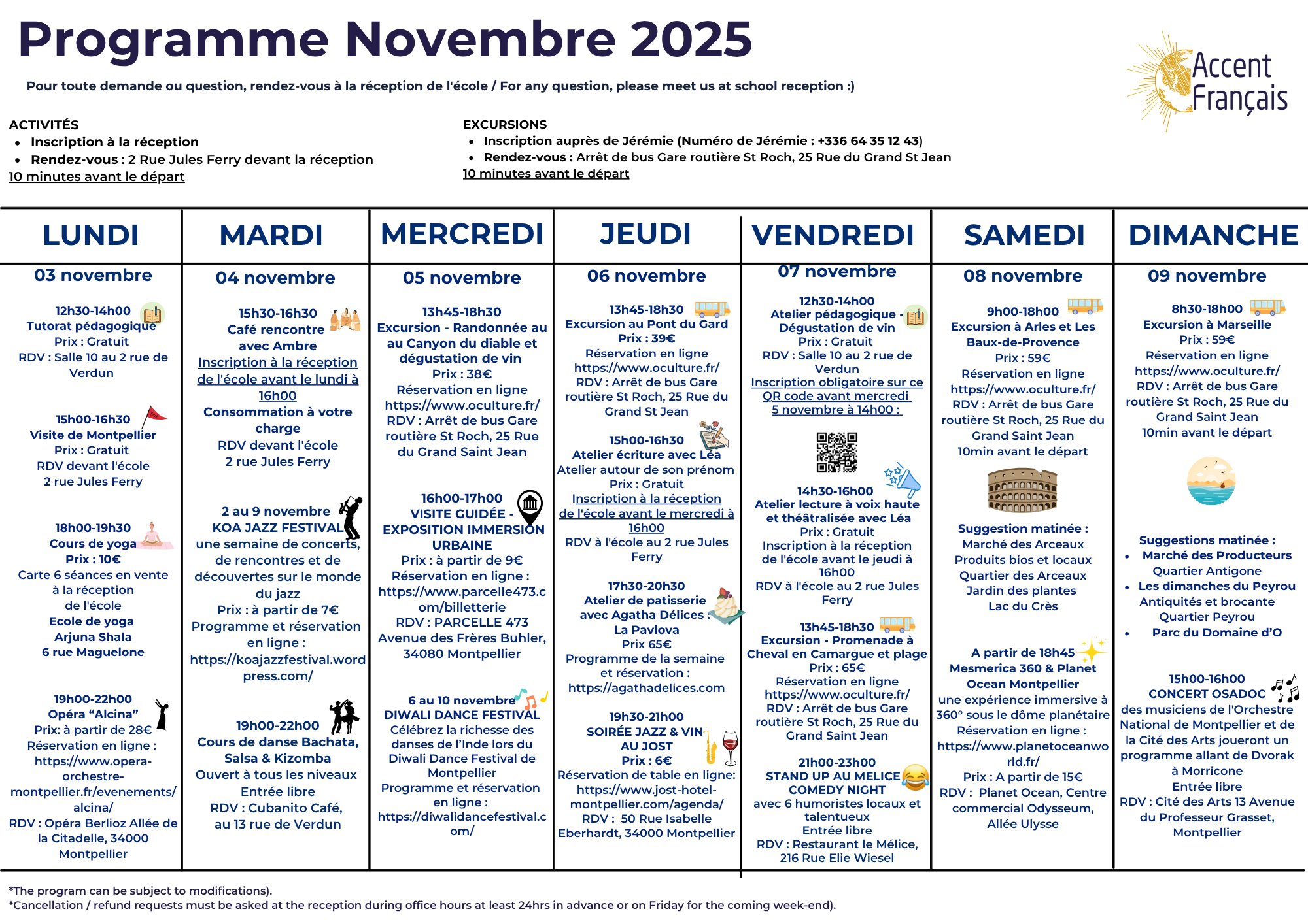 Programme d'activités de la semaine du 3 au 9 novembre 2025