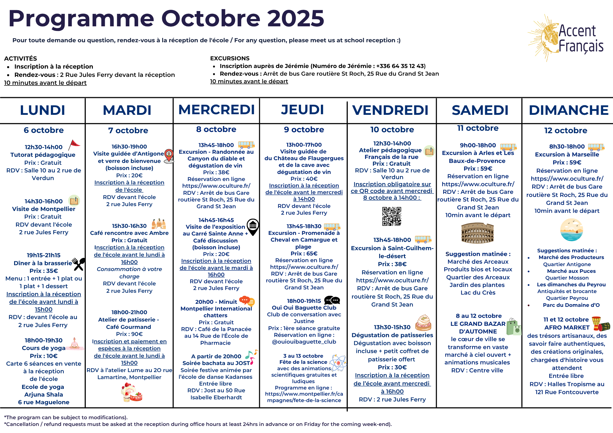 Programme d'activités de la semaine du 6 au 12 octobre 2025