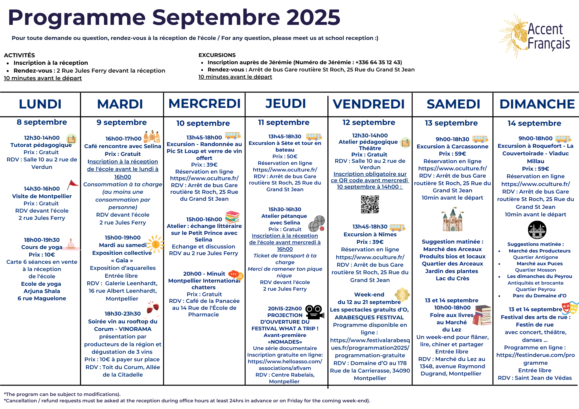 Programme d'activités de la semaine du 8 au 14 septembre 2025